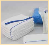 Sterile, absorbent sponges used in surgical and medical procedures to control bleeding and protect tissues.