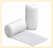 Soft, absorbent cotton rolls used for wound padding and cushioning to protect injuries and aid in healing.